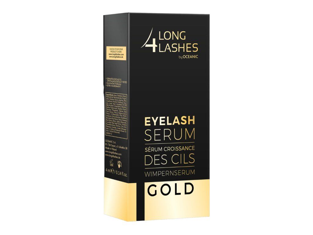 LONG4LASHES Eyelash Serum GOLD je intenzívna starostlivosť určená pre oslabené, riedke alebo krátke mihalnice. Vďaka koncentrovanej receptúre s aktívnymi zložkami sérum vyživuje a posilňuje korienky mihalníc, čím podporuje ich rast a zvyšuje hustotu.