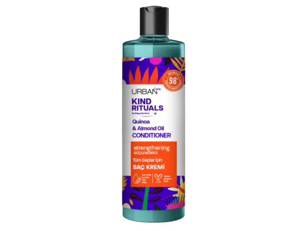 Doprajte svojim vlasom výživu, ktorú si zaslúžia! Kondicionér Urban Care Kind Rituals Quinoa & Almond je bohatý na prírodné zložky a ideálny pre každodennú starostlivosť. Quinoa – superpotravina plná proteínov, vitamínov a minerálov – posilňuje vlasy zvnútra a chráni ich prirodzenú štruktúru. Sladký mandľový olej ich intenzívne vyživuje, predchádza štiepeniu končekov a pomáha udržiavať zdravú rovnováhu olejov a hydratácie.