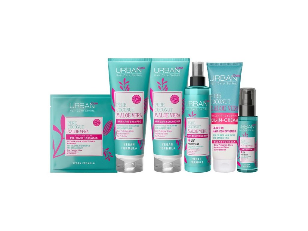 Urban Care Sérum s kokosovým olejom a aloe vera je intenzívna starostlivosť pre farbené, melírované a poškodené vlasy. Pomáha dlhodobo zachovať sýtosť farby, obnovuje prirodzený lesk a chráni vlasy pred UV žiarením.